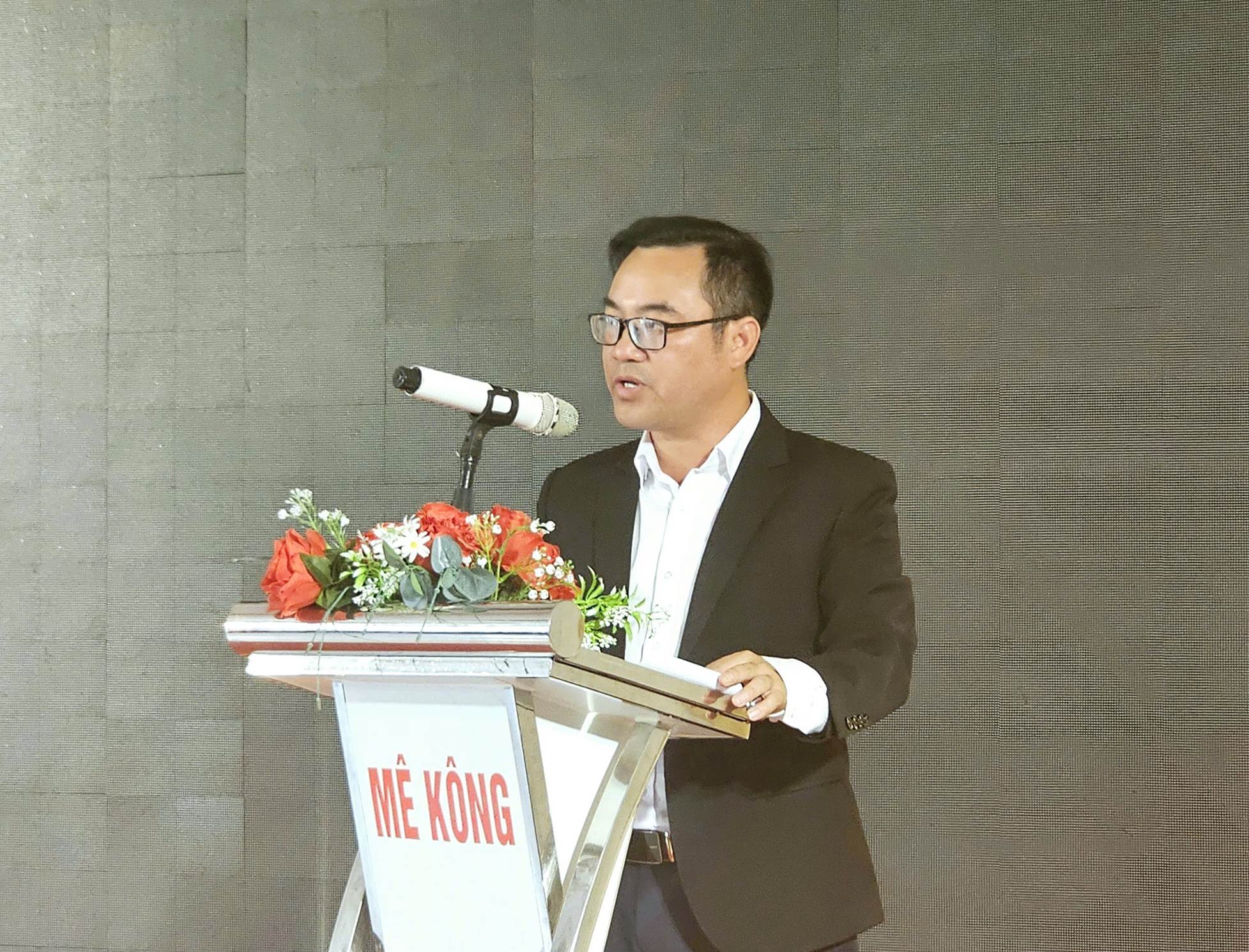 Ông Trần Phi Tường, Phó Giám đốc Trung tâm Xúc tiến Đầu tư, Thương mại và Du lịch tỉnh Quảng Trị phát biểu tại buổi lễ. Ảnh: Quốc Bảo