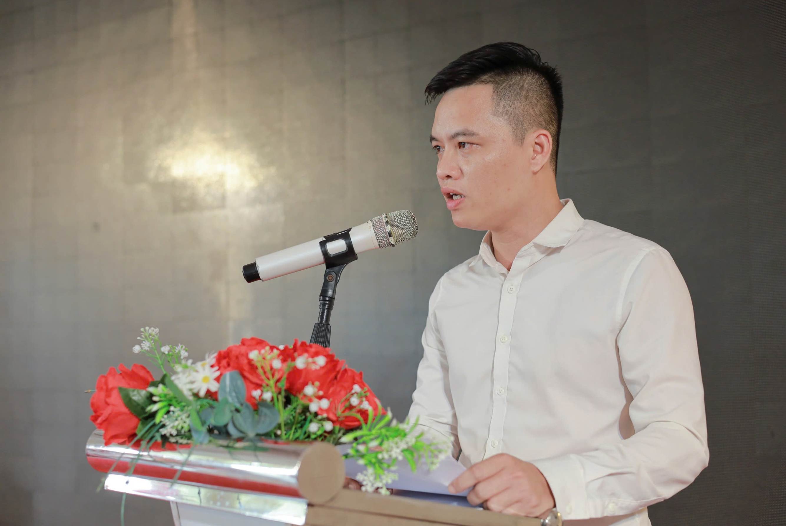 Ông Lê Trường Nhật, đại diện Công ty TNHH MTV Phân phối sản phẩm Trường An Quảng Trị phát biểu tại Lễ ra mắt. Ảnh: Quốc Bảo